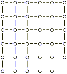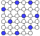 El diagrama indica la ubicación de los 35 barrios de una ciudad. Los círculos son barrios y las líneas carreteras. La distancia entre barrios es 5 Km. El intendente decide que ningún barrio debe estar a más de 5 Km. de un cuartel de bomberos.