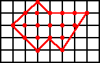 Esto resulta obvio para la figura formada por sólo dos puntos en vértices consecutivos, cuya área es cero. Por cada punto adicional que añadamos en la periferia inmediata, aumenta el área en media unidad, quedando de este modo demostrada por inducción la fórmula.